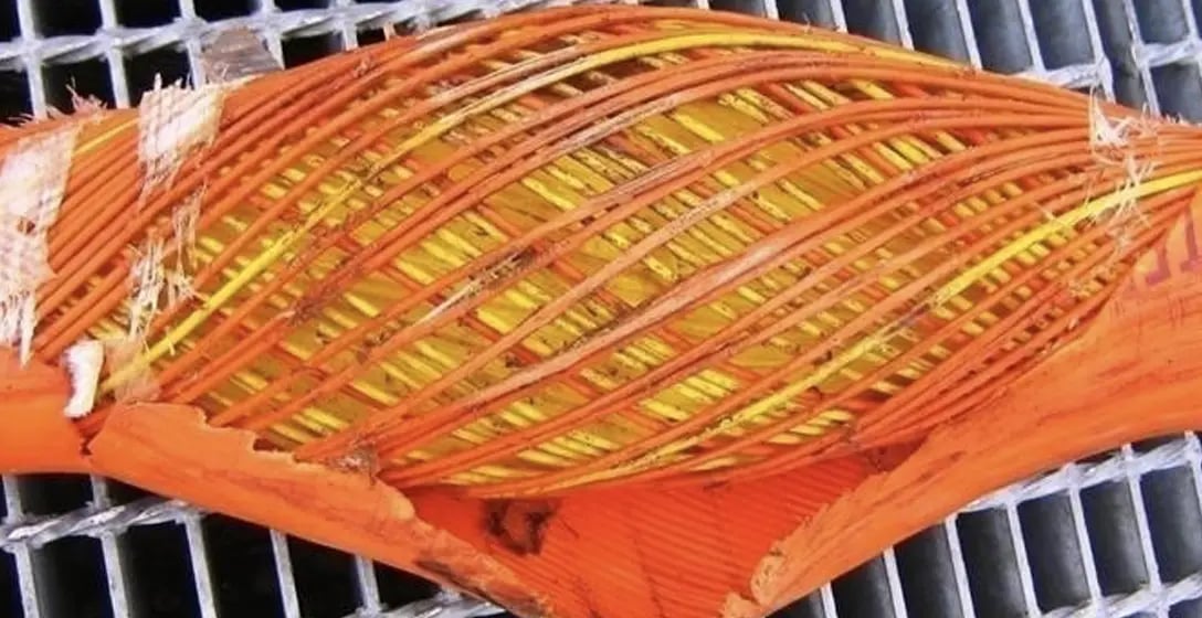 Another typical result of excessive rotation is the so-called corkscrew (see image below). This cable deformation is visible on the outside of the ROV Cable and looks like the corkscrew we know from the kitchen. In the worst case, a corkscrew can rupture the core or strength member, putting the entire subsea project at risk. Preventing deformation of the cable is therefore of great importance.